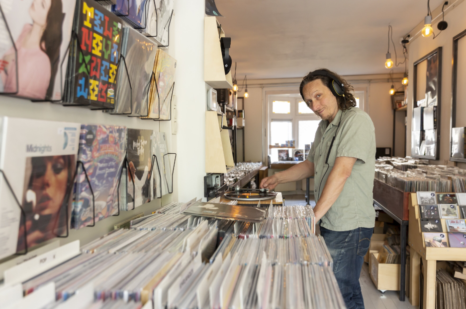 Over de vraag welke sfeer hij in zijn winkel wil hebben is hij niet bewust bezig. “Ik geloof niet in een vooropgezet plan qua sfeer. Ik wil mensen uitnodigen om binnen te komen, zonder verplichting. Mensen zijn te gast. Ik hoop dat ze zich welkom voelen en probeer dat uit te stralen.” Vaste klant Bart, die door de platenbakken aan het struinen is, kijkt op en roept “Dat doe je zeker. En je ontdekt hier ook nog eens iets, zoals laatst die geweldige plaat van Fontaines DC. Dit is toch veel leuker dan online bestellen?”